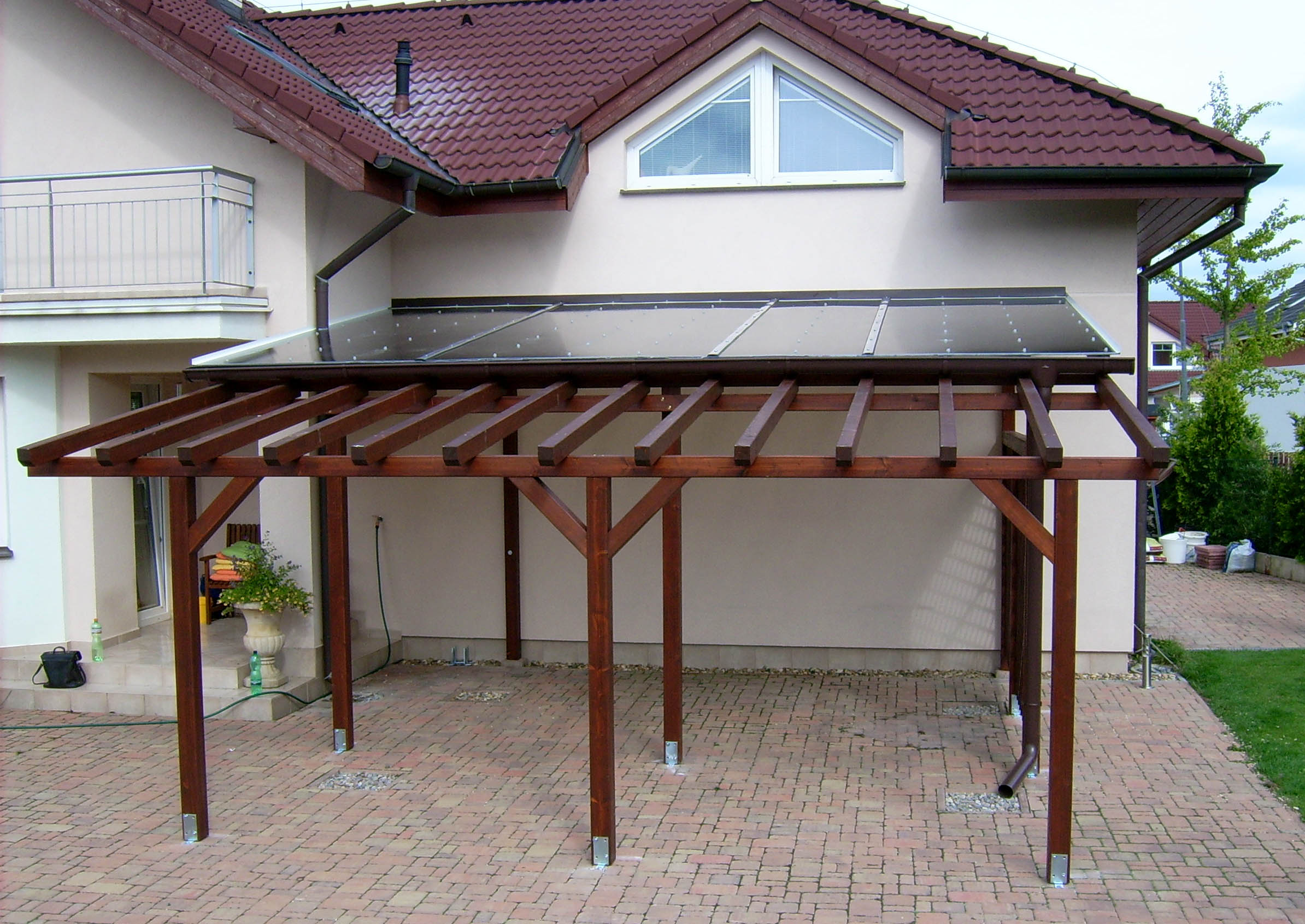 - Pergolové zastřešení prodražuje implementace systému pro odvod srážkové vody.