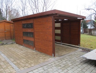 - Pergola na auto včetně menšího skladu nebo dílničky.