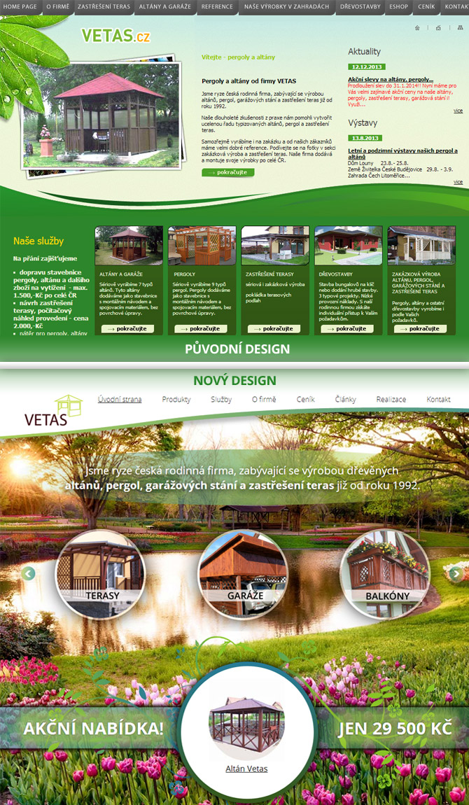 Redesignem prošlo celé grafické řešení. Chceme, abyste se pokaždé, když navštívíte náš web, ocitli v krásné zahradě, která vás myšlenkami přenese blíže k našemu sortimentu a navodí poklidnou atmosféru. Grafické řešení dává mimo jiné prostor pro vaši snadnější orientaci na webu a pomáhá přehledněji prezentovat naše výrobky.