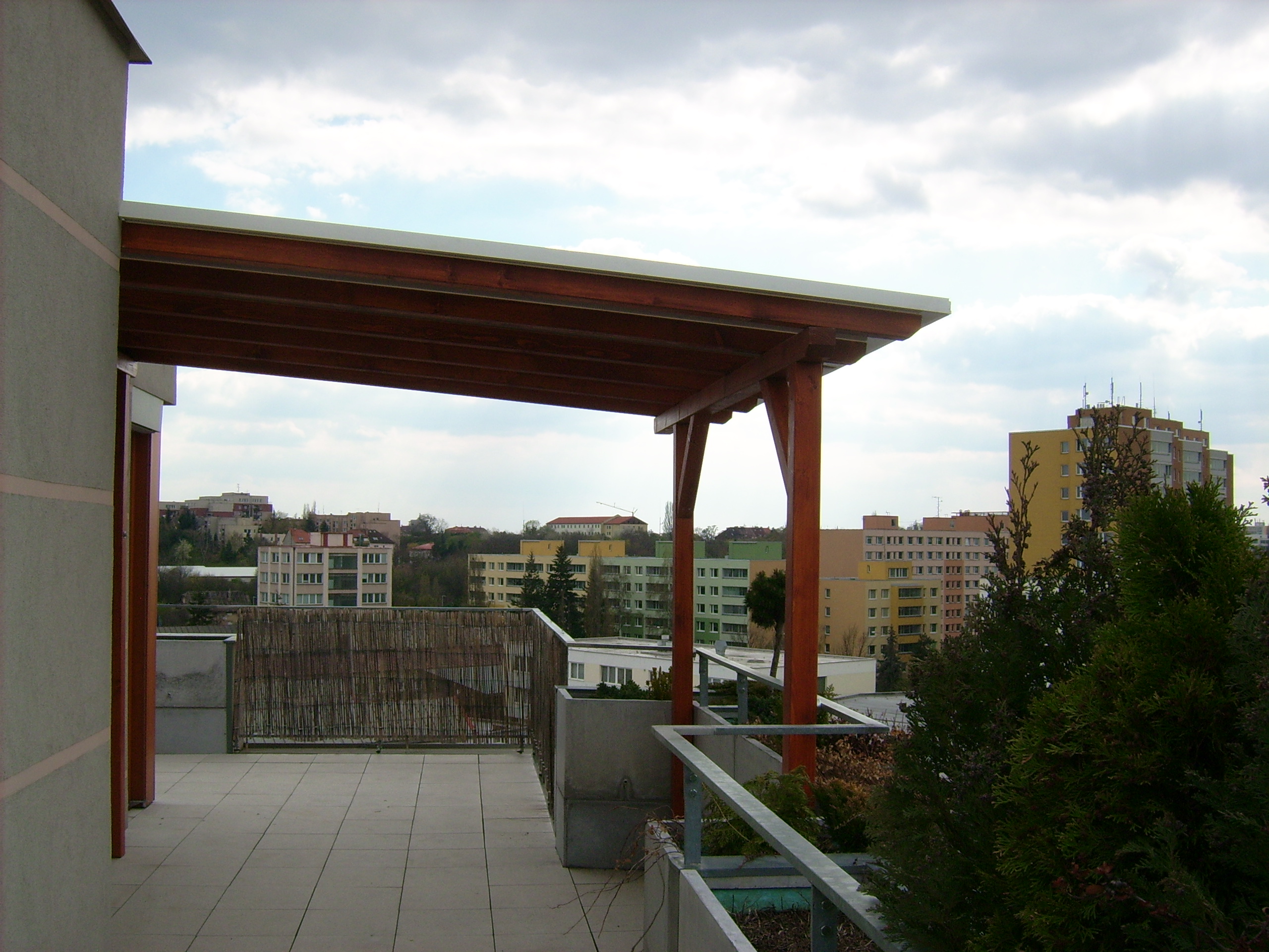 Všechny námi používané materiály jsou vhodné pro venkovní použití. Nejvyšší odolnost vůči silnému větru a prudkému dešti má plechová krytina a kvalitní asfaltový šindel.